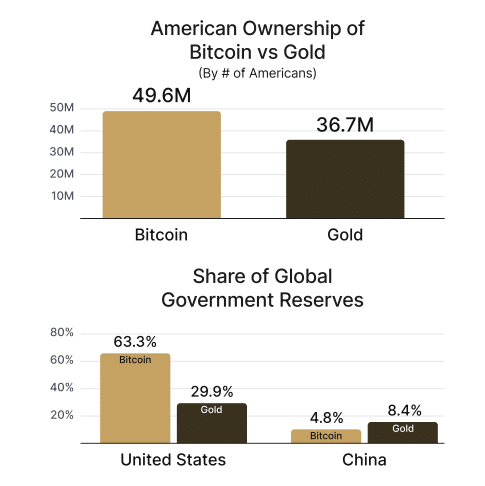 - Nearly 50 million Americans now own Bitcoin, the highest global ownership rate.