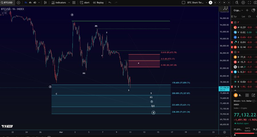 However, as stated by More Crypto Online, it has been identified that Bitcoin has the weakest support base. In an X post, he pointed out that wave three is still making a new low thereby pointing that further downside risks prevail unless the momentum changes. If the current trend remains so, Bitcoin will first reach 475,327 and then plunge to $72,631. Thus, any bullish signal can be consider as speculative unless $85,672 is overcome with the five-wave reversal.