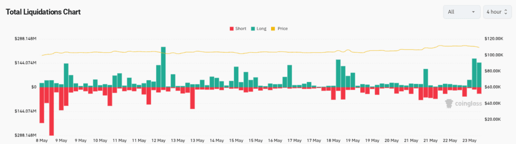 Bitcoin swiftly declined by nearly 4% within hours of Trump’s statement, briefly touching a low not seen since early May. According to data from CoinGlass, this sharp move triggered nearly $350 million in liquidations within a 4-hour window, with total liquidations over the previous 24 hours exceeding $500 million, most of it from long positions.