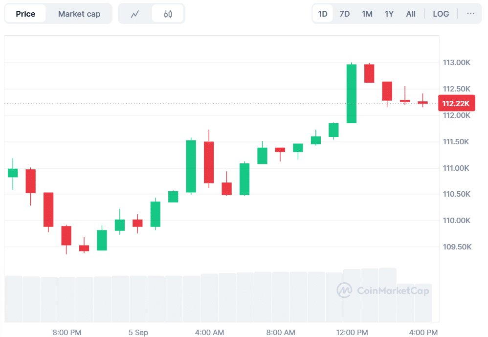 Bitcoin (BTC) is currently trading at $112,169, representing a 1.15% increase over the past day. The trading volume is down by 17.3 percent and is currently at $47.82 billion. Bitcoin has increased by 1.93% over the past week, although the trading activity was reduced.