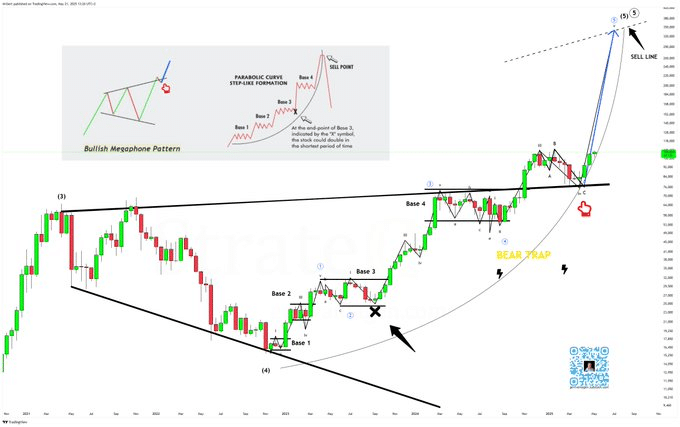On the more bullish end, technical analyst Gert van Lagen projected an even more ambitious price range between $300,000 and $320,000. In a recent post on X (formerly Twitter), van Lagen highlighted Bitcoin’s breakout from a four-year Megaphone Pattern, a technical formation characterized by diverging trendlines with higher highs and lower lows. This pattern typically signals a strong directional move following a breakout above the upper resistance line.