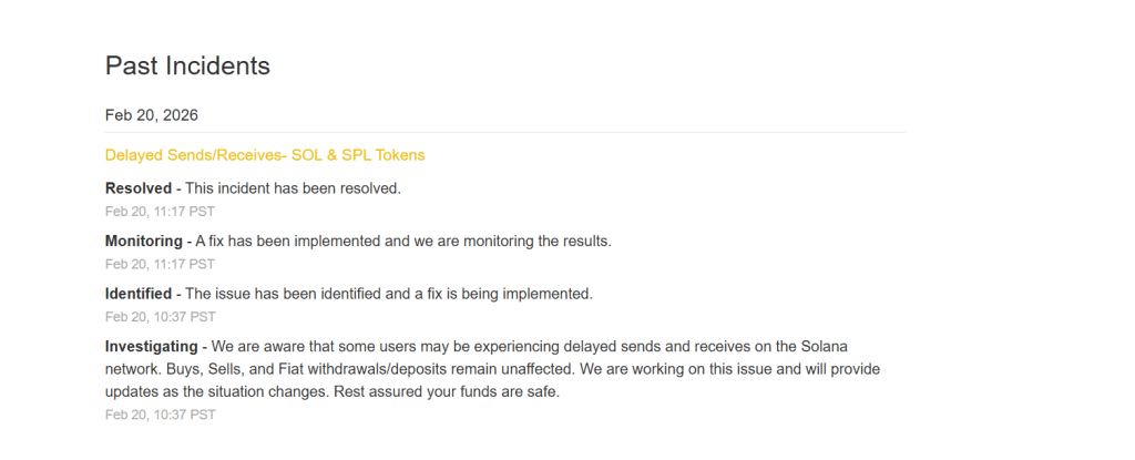 - Coinbase reports a new Solana delay as technical issues persist across recent network incidents.