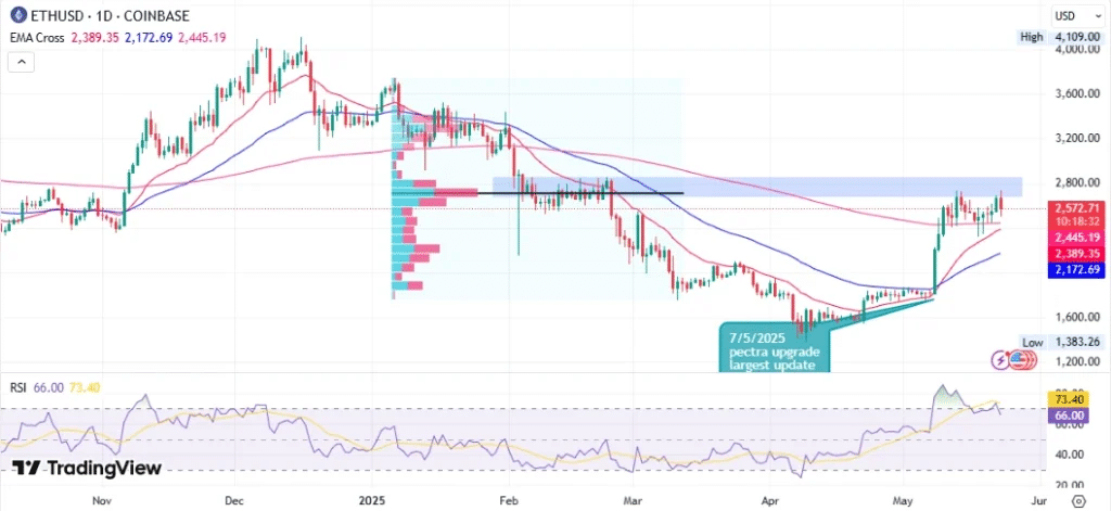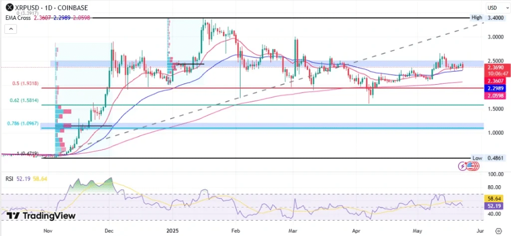 As of mid-May, Ethereum has repeatedly attempted to reclaim this level, but weak buying pressure and macroeconomic uncertainty have stalled progress. If ETH breaks below its recent swing low of $2,330, analysts warn it could drop further to retest support around $2,100.