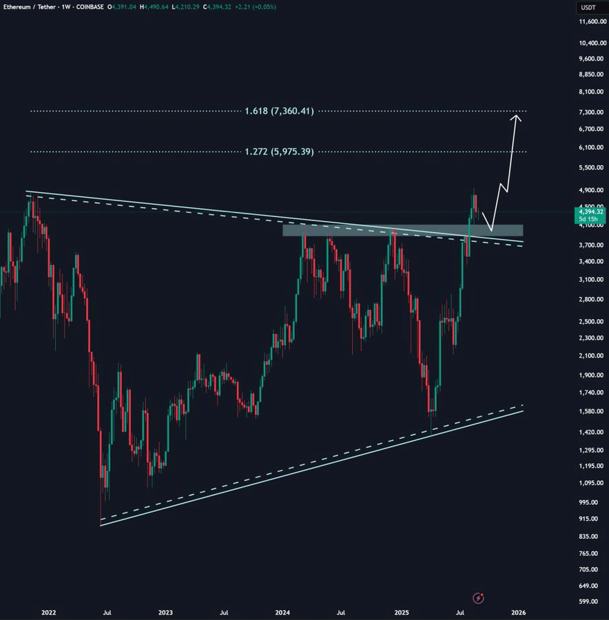 - Analysts view the $4,100–$3,900 zone as key support that could confirm a bullish continuation.