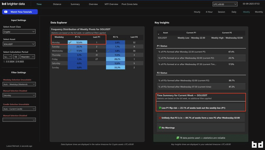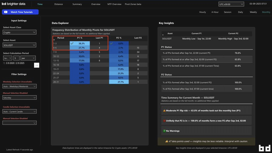 Statistics on a monthly basis corroborate this point. The low for September occurred on September 1 at 22:00 UTC. Data indicates that 56% of monthly candles place their first pivot (P1) in the first six days of the month. If September ends bullish, this low has a good chance of holding. Analysts see it as a solid pivot point to support higher levels.