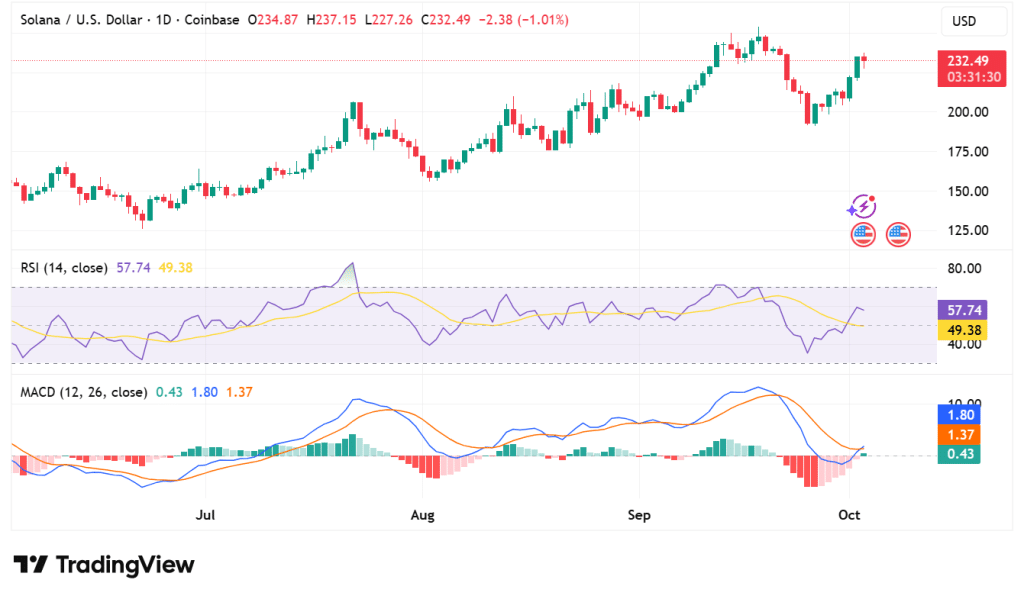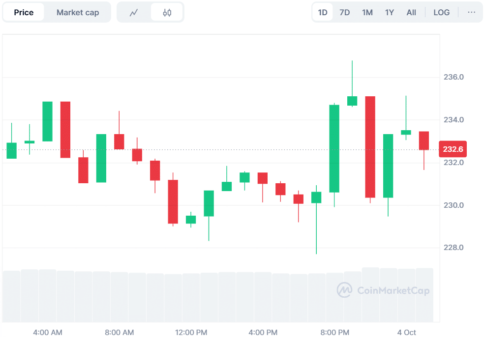 Solana (SOL) is currently trading at $232.57, which is an increase of 0.19% in the last 24 hours. Cryptocurrency has experienced a sharp increase in trading volume, which has risen by 7.06% and currently stands at $9.83 billion. This spike in volume indicates an increasing level of interest in the market and investor confidence in Solana.