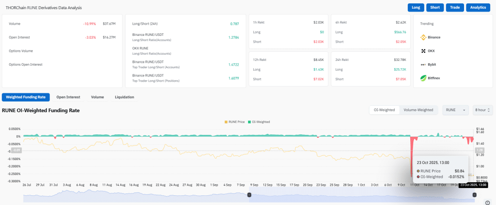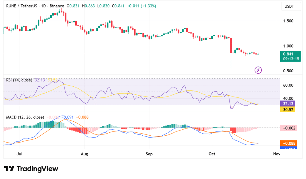 - RUNE’s RSI at 32.13 suggests an oversold condition, indicating potential for a price rally.
